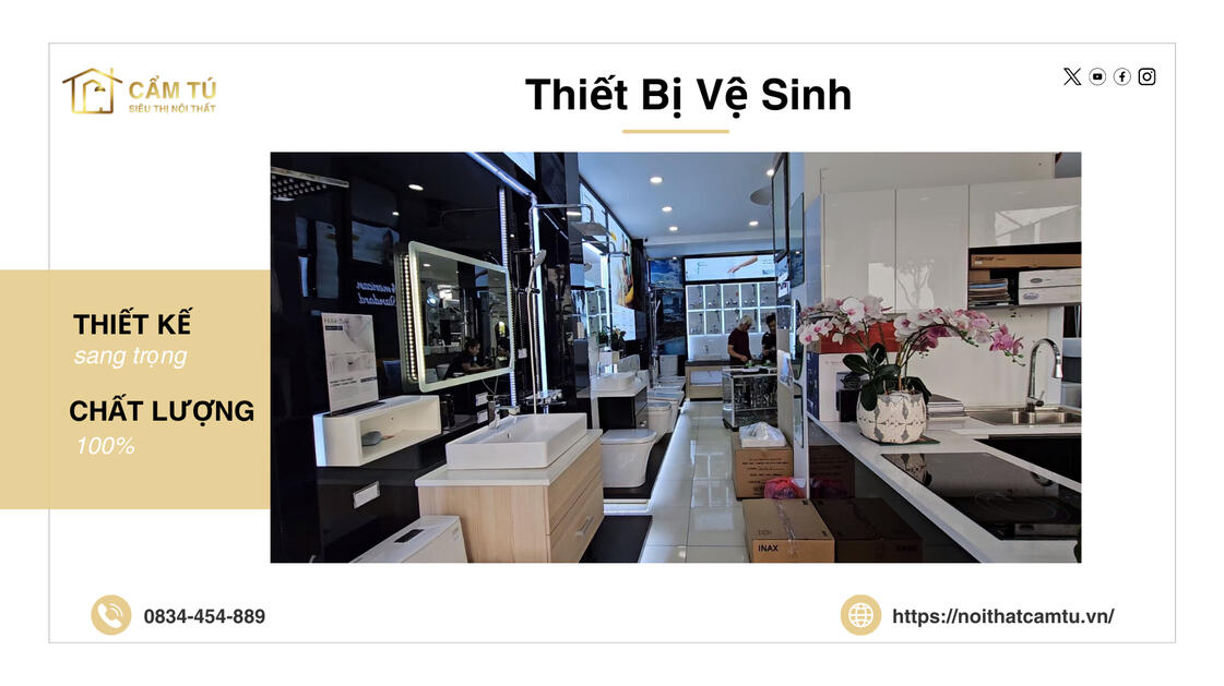 Siêu thị nội thất Cẩm Tú là nơi bạn có thể tìm thấy đa dạng sản phẩm chất lượng về thiết bị vệ sinh, thiết bị bếp, thiết bị khóa cửa, và nội thất chính hãng. Với hơn 20 năm hoạt động, chúng tôi đã cam kết mang lại lợi ích tối đa cho khách hàng bằng cách cung cấp sản phẩm và dịch vụ xuất sắc, vững mạnh thương hiệu trong suốt thời gian qua.